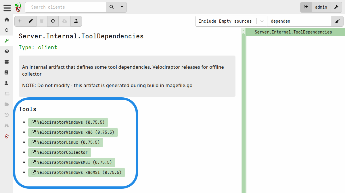 Server.Internal.ToolDependencies artifact. This is a built-in artifact that is