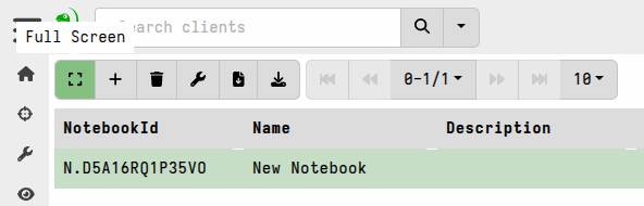 The notebook may be switched into full screen mode via the notebook toolbar, which is useful when dealing with large tables. With this setting, the notebook takes up the entire width of the screen.